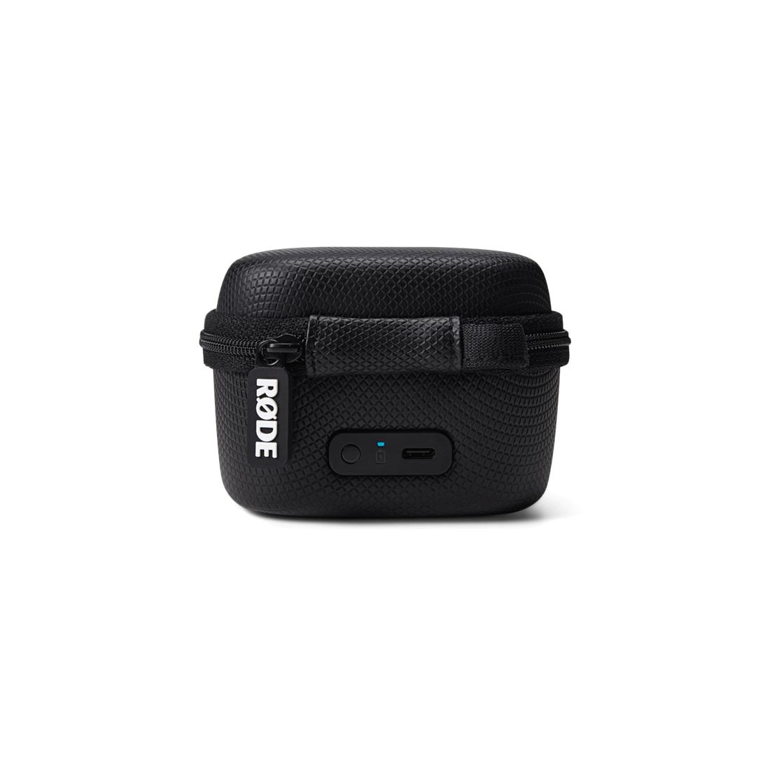 Charge Case+ es un estuche compacto para Wireless GO 3 que mantiene todo el sistema seguro y protegido cuando se guarda o se lleva de viaje.