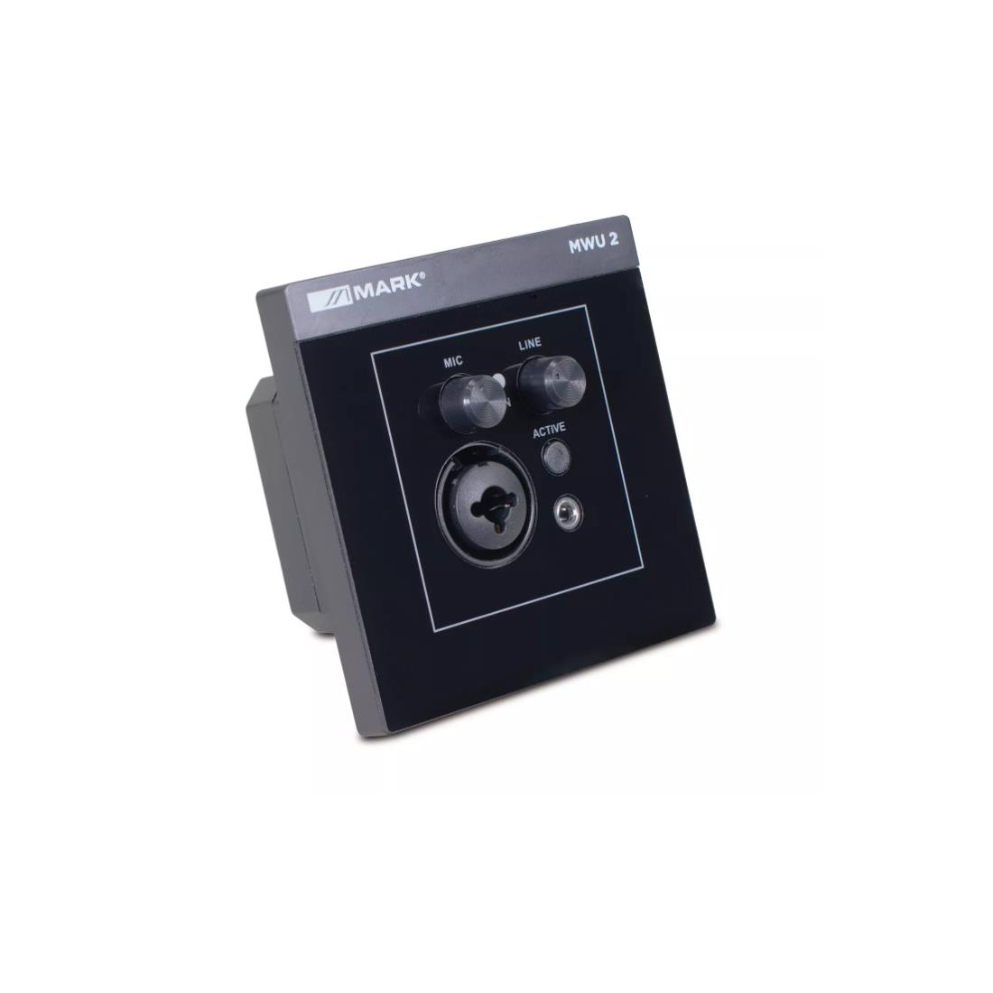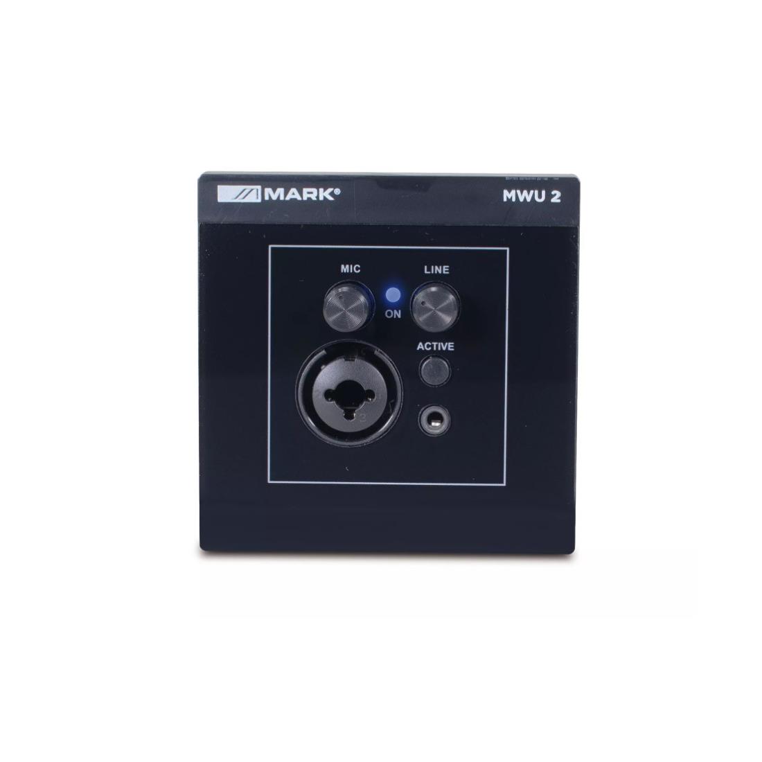 MWU 2 es un mando mural totalmente compatible con el amplificador de instalación PM 360 MX. Su conectividad RJ 45 le permite una perfecta integración con dicho amplificador. Dispone de un entrada de señal MIC/LINE mediante conector COMBI y minijack. En el frontal incorpora potenciómetros de ganancia de ambos tipos de entrada (MIC/LINE), así como botón de encendido. En la parte trasera, aparte del conexionado RJ45, integra un bloque de dip-switches que permiten seleccionar el modo (mono/stéreo) o un atenuador de -10dB, y selección phantom al usar este tipo de micrófonos. Su formato es standard para caja eléctrica, facilitando su completa integración.