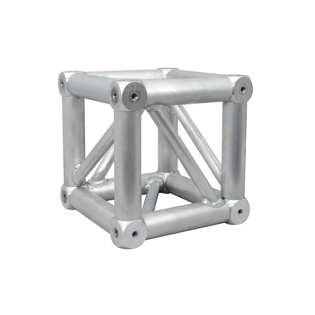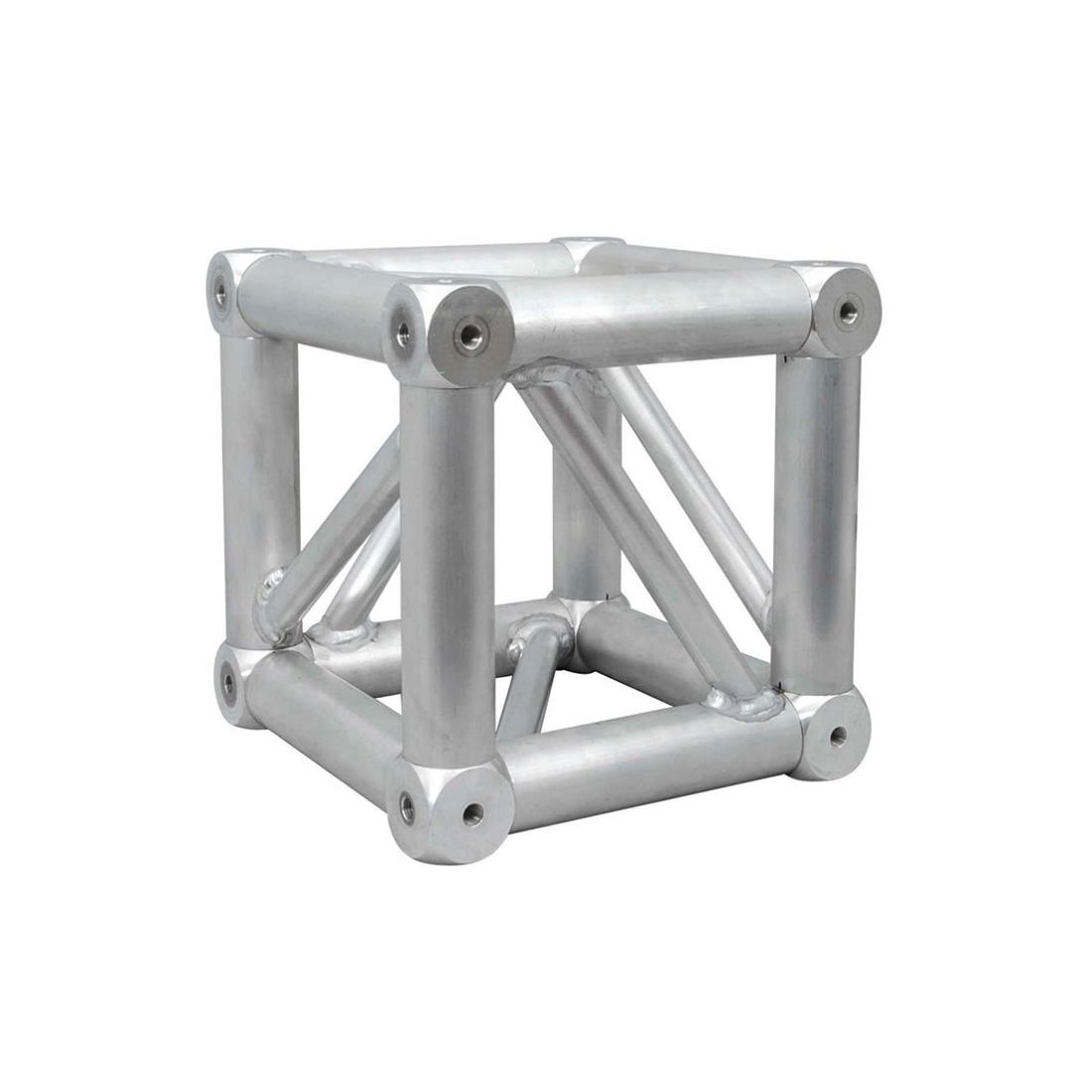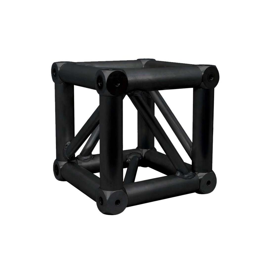 Cubo Multiconexión con ocho dados para truss de aluminio de 29 cm de lado. Fabricado con tubo Multiconexión. Con conexiones en las cuatro esquinas. Color plateado o negro. Compatible SERIE G.