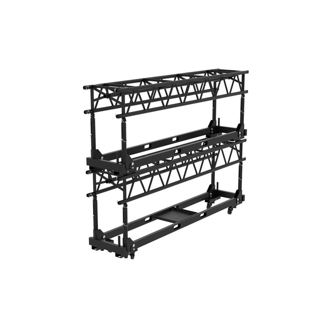 FPR CART es un elemento innovador que facilita el montaje de sistemas de iluminación y moverlos por un escenario, cargarlos o descargarlos sin necesidad de desmontar todos las luminarias. El FPR CART permite fijar y transportar tramos de la serie FPR TRUSS . Sus horquillas abatibles permiten reducir su altura, facilitando el transporte almacenamiento. Estas horquillas, ajustables en altura, permiten fijar el FPR TRUSS y adecuar su altura a los elementos montados, ya sean focos, cabezas móviles o incluso pantallas LED. La posibilidad de apilar varios trolleys, aumenta la eficacia al optimizar el espacio a la hora de transportarlos o almacenarlos.