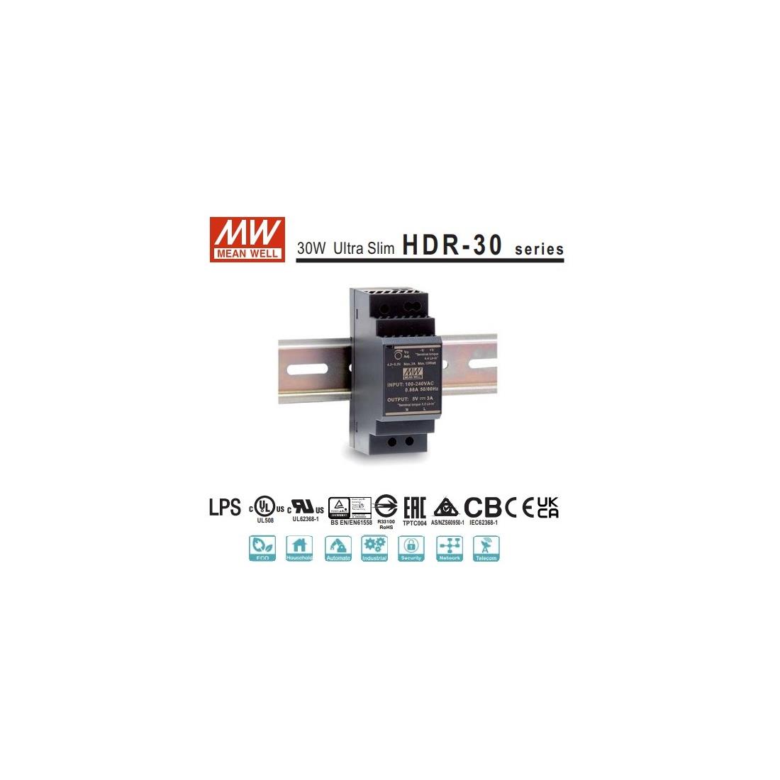 Mean Well. Fuente carril F.Estrecho 12v 2A HDR
