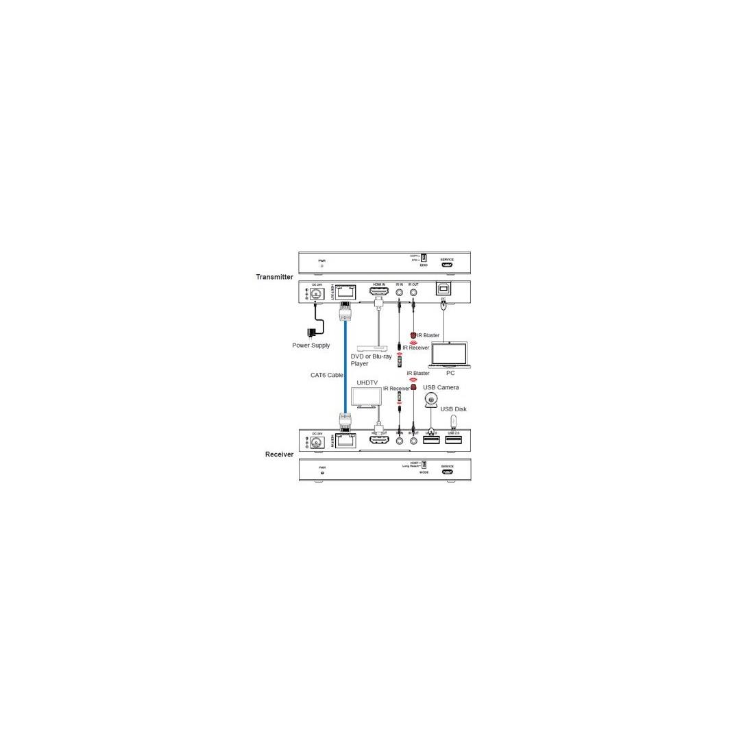 • Modo de Alcance Largo: la distancia de transmisión de la señal de video puede extenderse hasta 150m para 1080P o 120m para 4K60