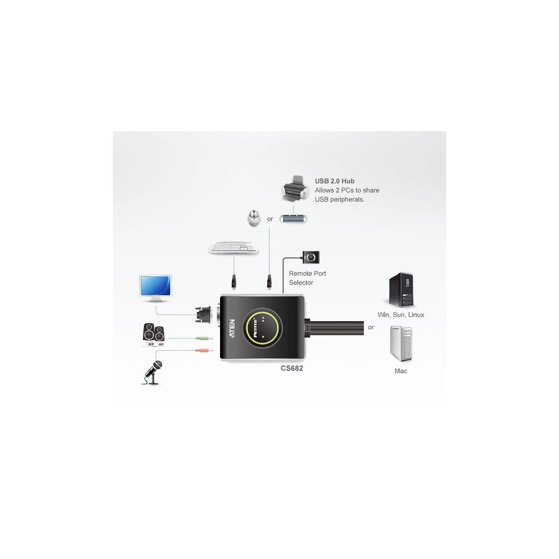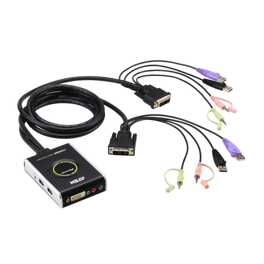 KVM switch DVI-D+USB+sonido 2PC 1,2m Aten