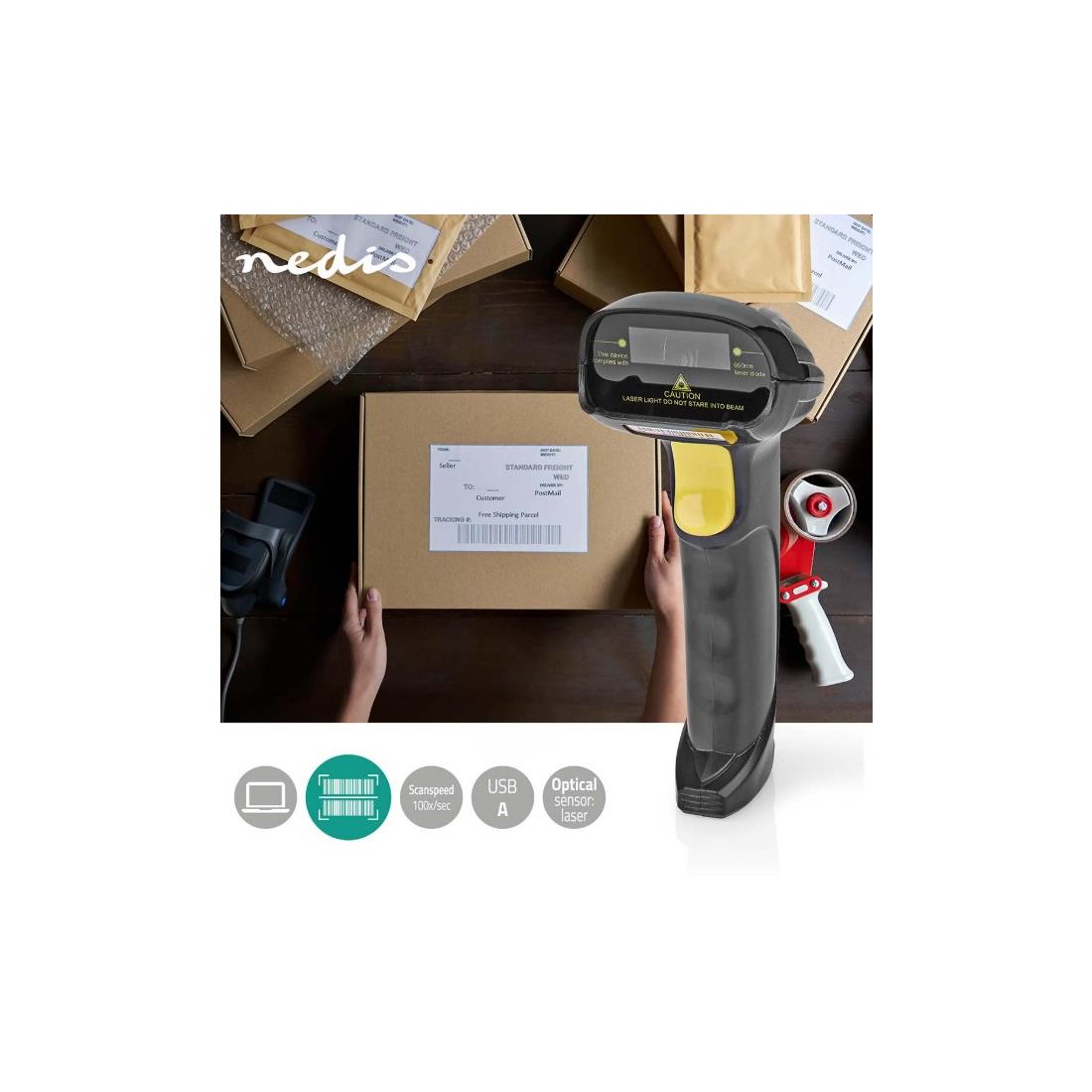 Lector codigo de barras Laser Lineal USB2.0 Nedis.1D Lineal USB 2.0 colorGris/negro