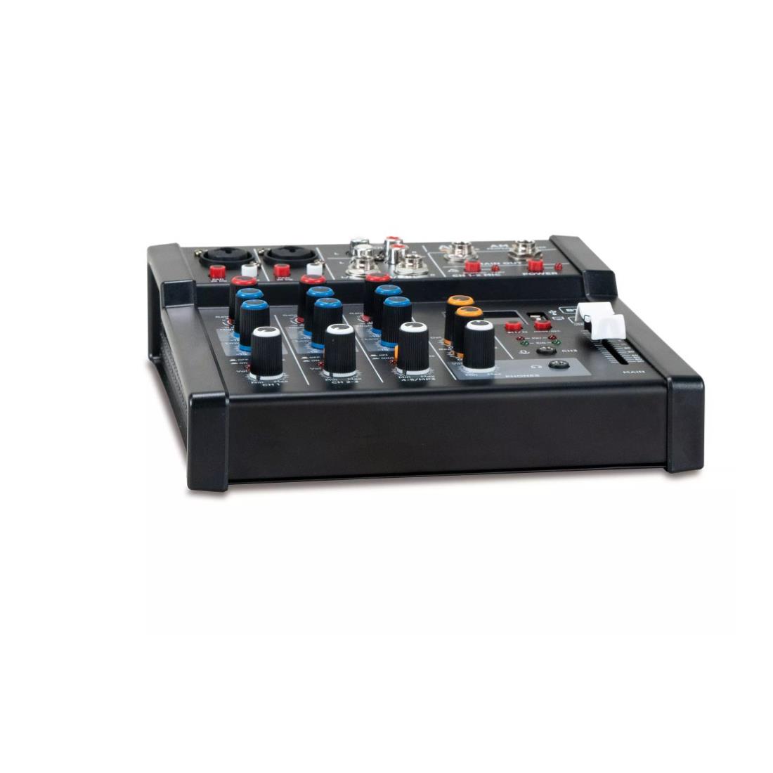 AM 5 BT es un mezclador de audio con 2 canales mono MIC/LINE, 1 canal estéreo y 1 entrada de micrófono adicional. Sus canales de entrada MIC/LINE incorporan alimentación fantasma para micrófonos de condensador. Además, estas entradas incorporan un interruptor HPF y PAD para ajustar los niveles de entrada.