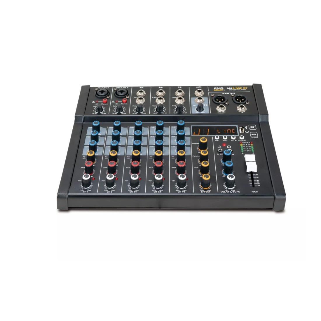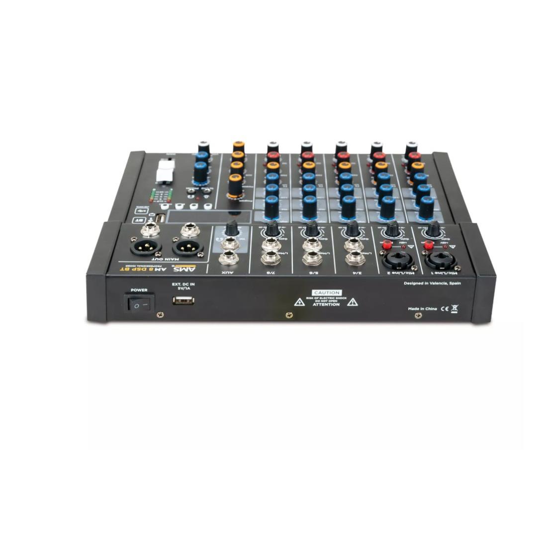 Mezclador de audio. 2 canales mono+3 ST. Reproductor USB/Bluetooth AM 8 DSP BT