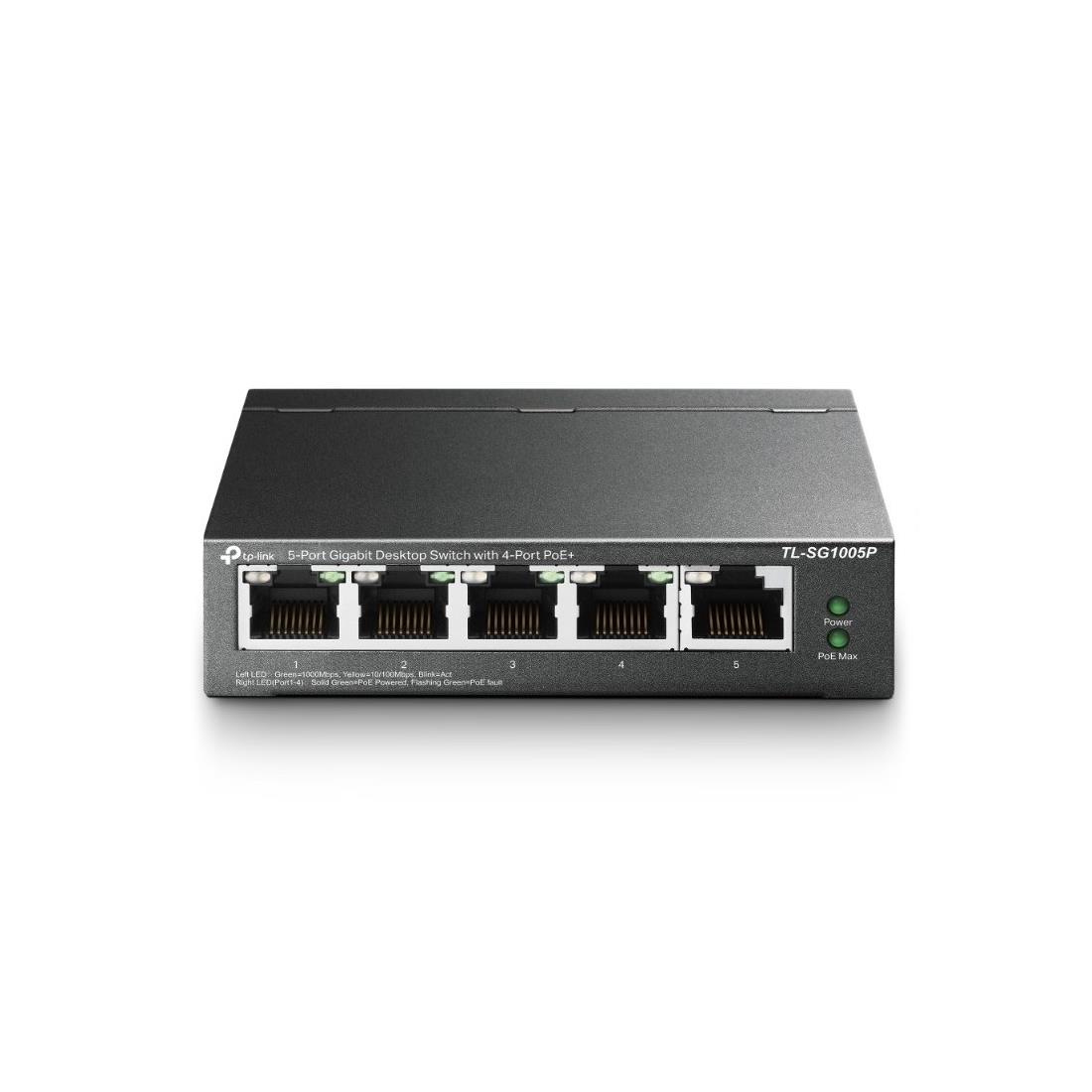 Con cuatro puertos PoE+, transfiere datos y energía en un solo cable