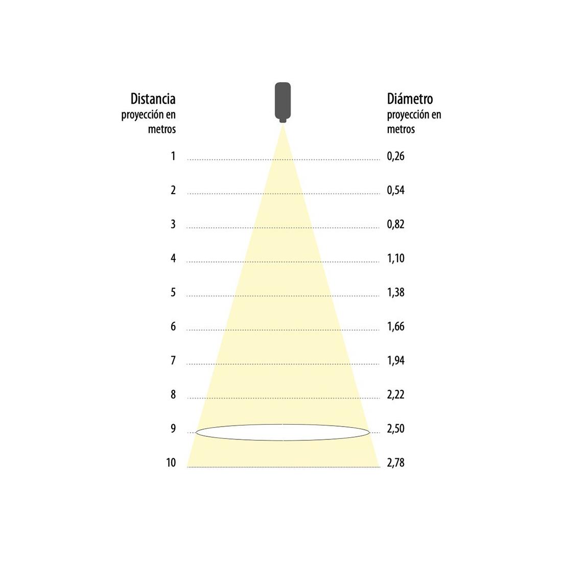 - A 10 metros de distancia el diámetro de proyección es de 278 cm