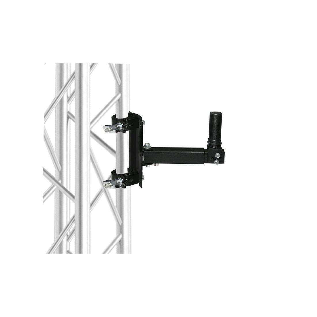 Soporte reforzado para altavoz, con dos abrazaderas para una fuerte fijación al truss. Su alta capacidad de carga (50 kg) lo hace la opción perfecta para los bafles pasivos o autoamplificados. Está provisto de terminal de inserción de Ø 35 mm.