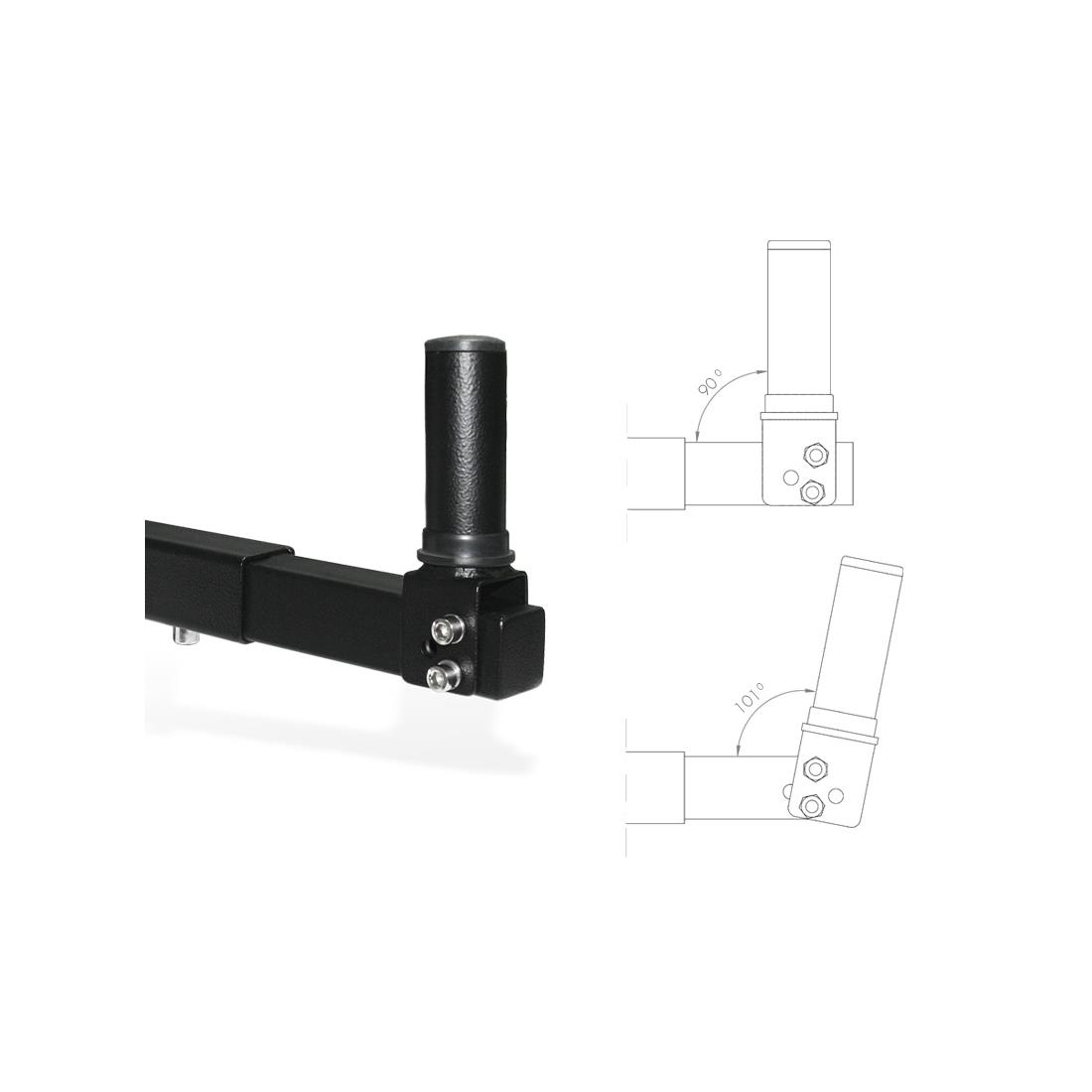 Regulable en inclinación: Su terminal de inserción al bafle, de 35 mm de diámetro, tiene dos posiciones: se puede colocar en posición recta (90º) o también se le puede dar inclinación (101º), lo que resulta imprescindible en instalaciones donde el bafle tiene que ir a una altura superior a los 2 metros.