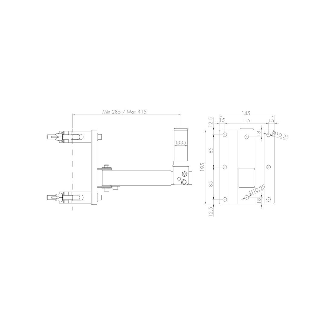 Diseño telescópico: Brazo telescópico que permite una separación del bafle al truss/tubo/calle desde 28,5 cm hasta un máximo de 41,5 cm.