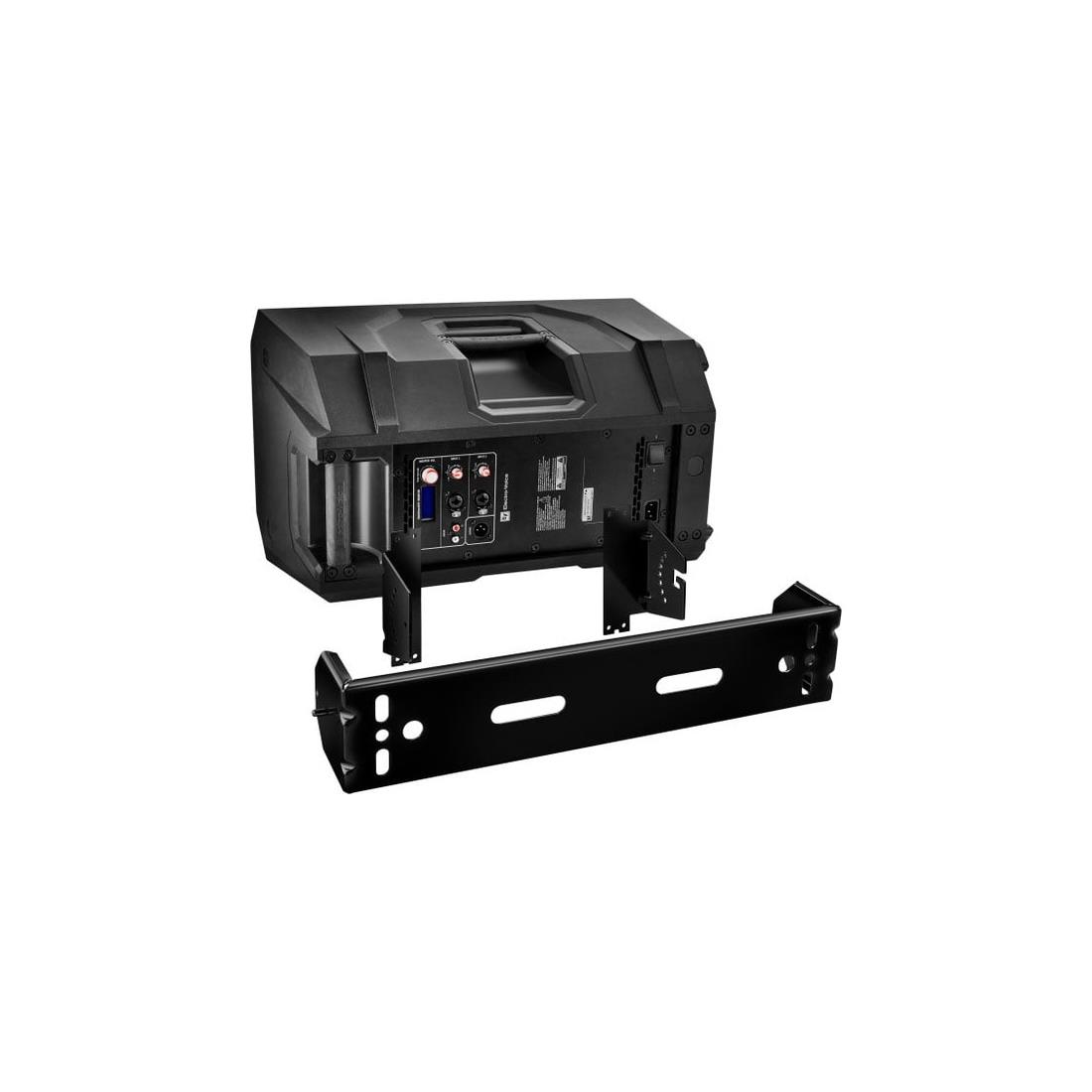 Sistema full range de 2 vías autoamplificado. Recinto con forma trapezoidal asimétrico construido con moldeado de polipropileno inyectado, acabado encolor negro.