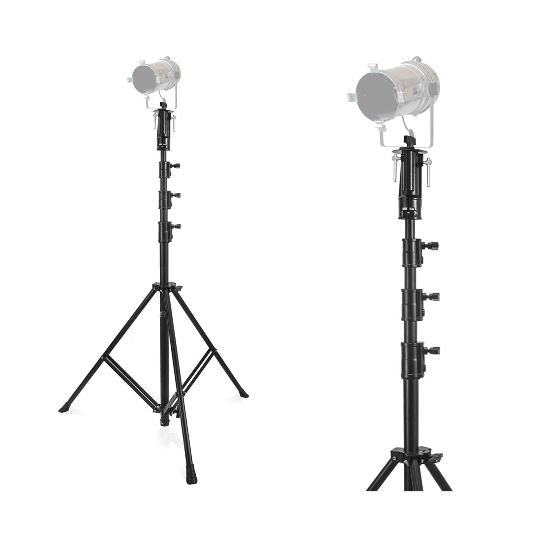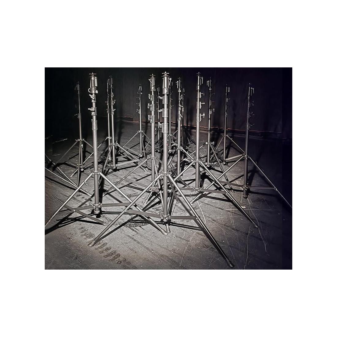 Torre de iluminación reforzada especialmente diseñada para su utilización en estudios, rodajes y cualquier evento donde se requiera la colocación de un foco a una altura de hasta 4,12 m.