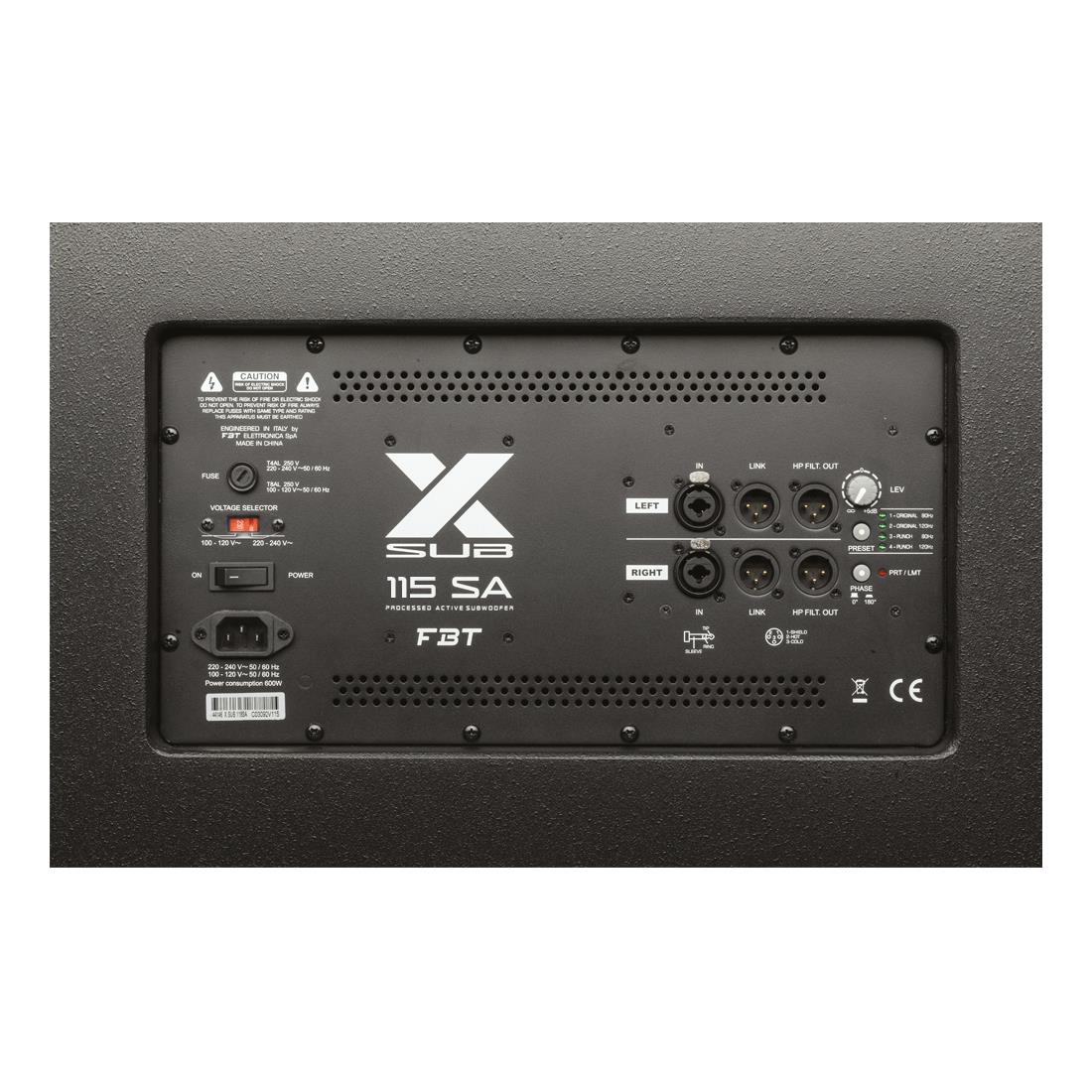 El X SUB 115SA es un subwoofer activo de 15" con diseño bass-reflex, diseñado para complementar las series X LITE y X PRO, ampliando el rendimiento de bajas frecuencias en sistemas de sonido portátiles e instalados. Está equipado con un woofer de 15" con una bobina móvil de 3", alimentado por un amplificador de clase D de 1200 W, que ofrece hasta 135 dB SPL y una respuesta en frecuencia de 42 Hz a 120 Hz.